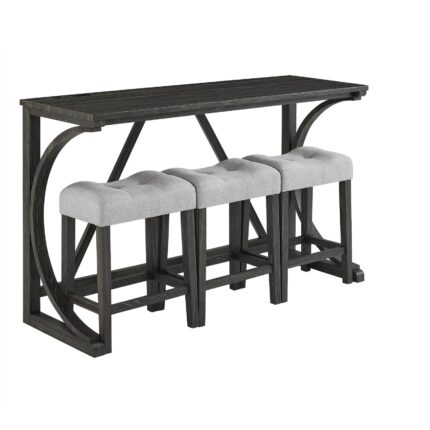 Long Dining Table Set with 3 Stools, Easy Assembly, Natural (Same SKU:W75753848)
