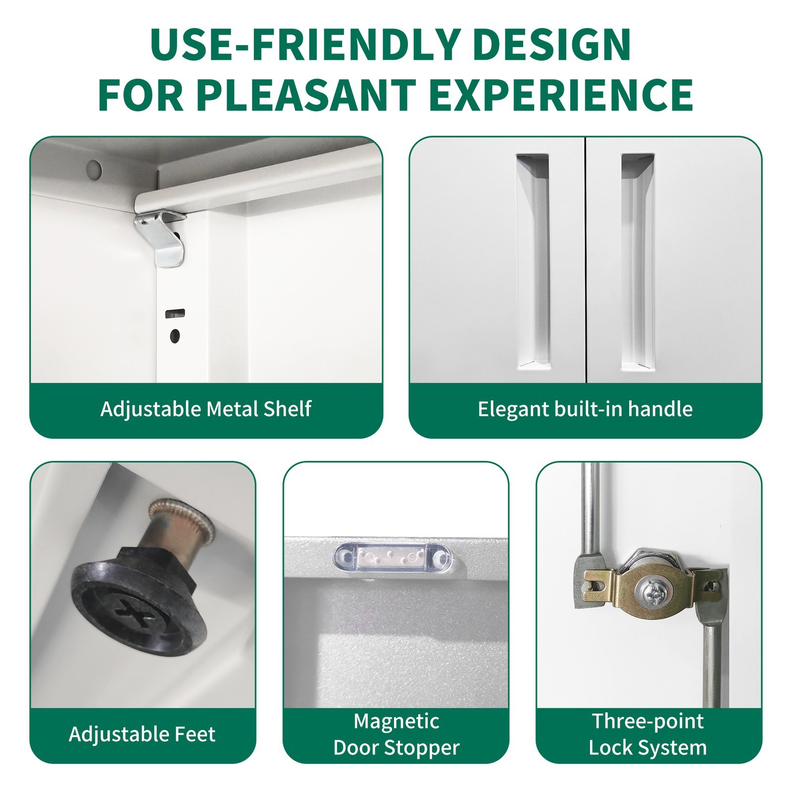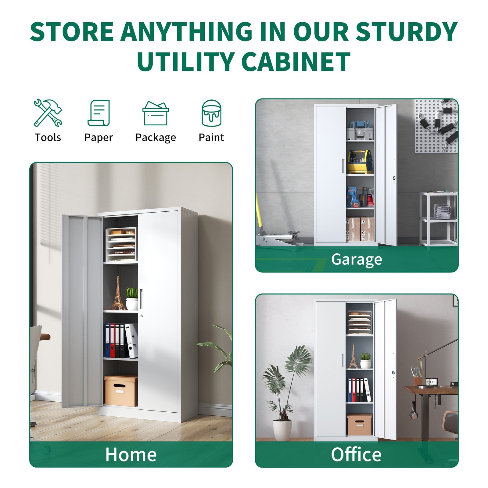 • Listing Description: Introducing this Heavy Metal Garage Storage Cabinet, crafted from 100% cold-rolled steel for unparalleled strength and durability. Our white metal cabinets with furniture locks provide a secure haven for your belongings, thanks to the newly developed wear-resistant coating.