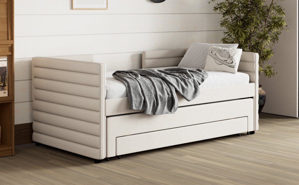 • 【Modern & Cozy Design】Upholstered in soft beige short-haired linen fabric, this daybed brings a contemporary and inviting look to any room décor. Works great as a casual sofa during the day and transforms into a bed by night.